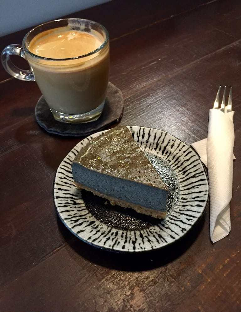 由於和家人吃了頗豐富的早餐,我只點了 灰咖啡 (NTD 100) 和 灰蛋糕(黑芝麻芝士蛋糕 NTD 80)。