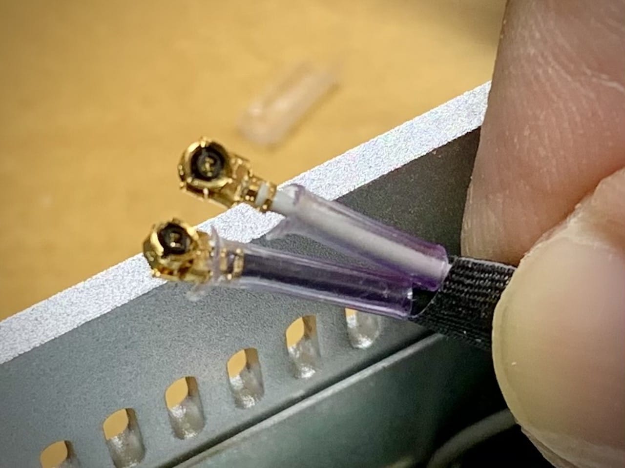 The two U.FL male connectors are very small and considerable work is required to plug in the cables.