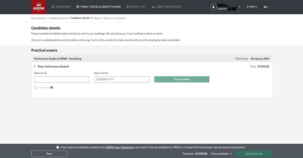 Anyway, I tried the following day and thanked god, I managed to enter the ABRSM online booking system.