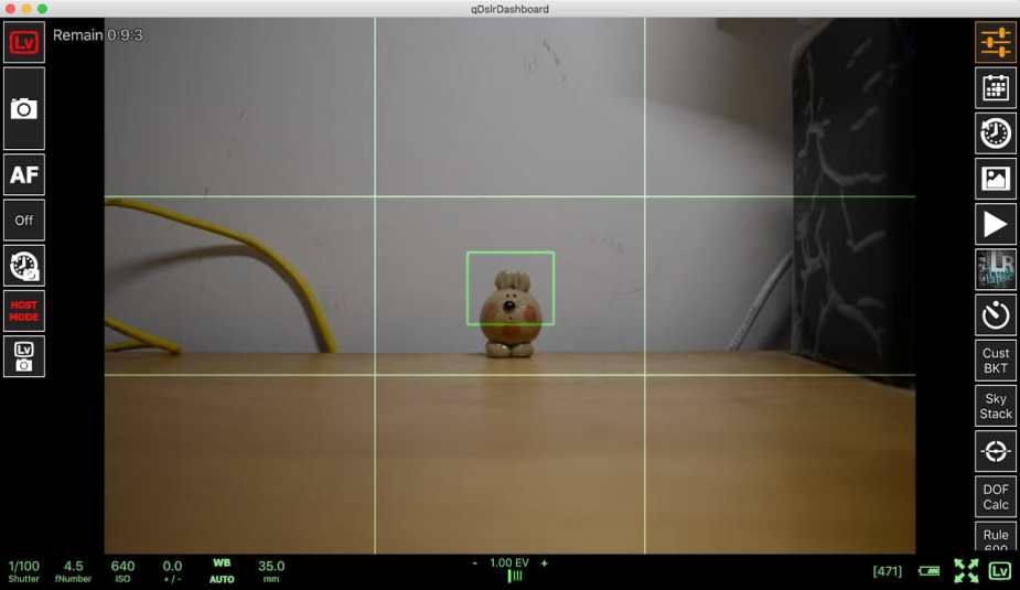 透過 qDslrDashboard 的介面,可調整 DSLR 的設置及截取到的相機的 Liveview 畫面。