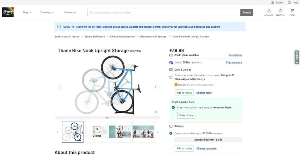 Delivery time if ordered through Amazon is about two to three days. However, the same product is also available in Argos. Not only the rack can be immediately picked up from selected Sainsbury’s store, I can also earn Nectar bonus points as well.