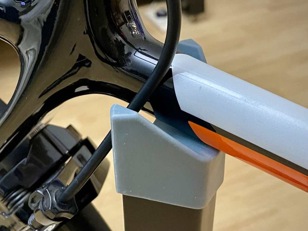 由於 Bike Nook 亦支援較粗輪軚的 MTB,我的 Road Bike 幼軚放在 ramp 上便顯得不太穩定,我只好另行找來兩條 velcro straps(Bike Nook 只提供一條 velcro strap 來固定前輪)把後輪綁好,再加入了兩組厚咭紙來固定。