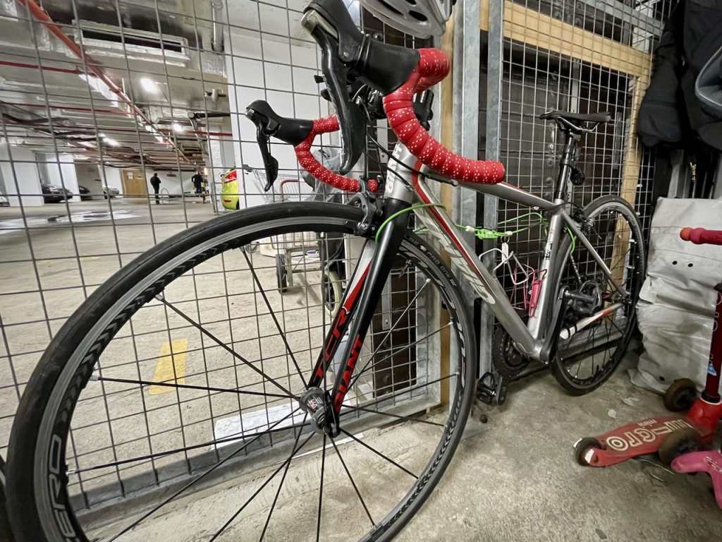 As I had already resumed my riding in UK for quite awhile, I placed the frequently used and cheaper road bike in the bicycle cage in the basement carpark. In order to let others know who she is, I put a beautiful necklace and name tag around her.