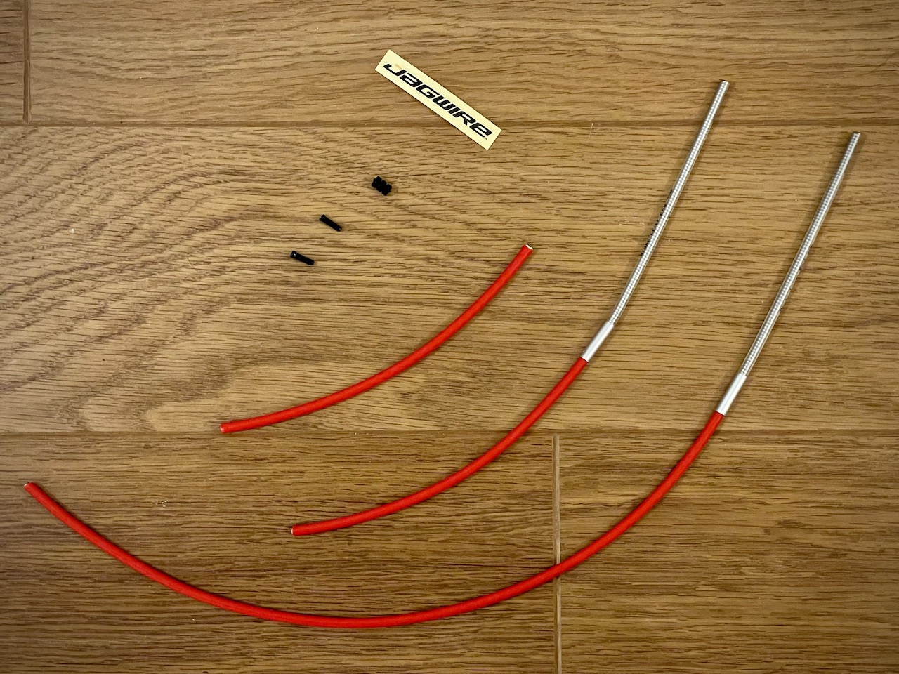 接着把三段 cable housing 就所需長度剪裁好,而隨 Jagwire Brake Cable Kit 附上的 end caps 因單車連接座較小,亦用不上了。