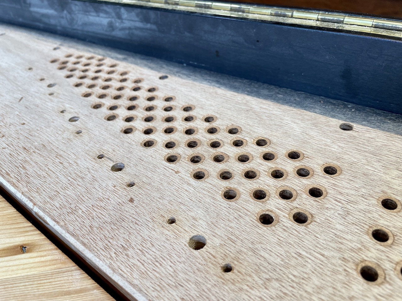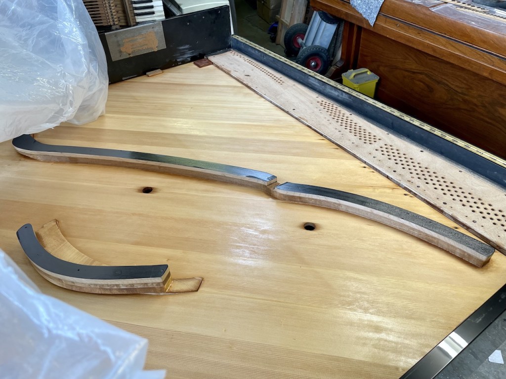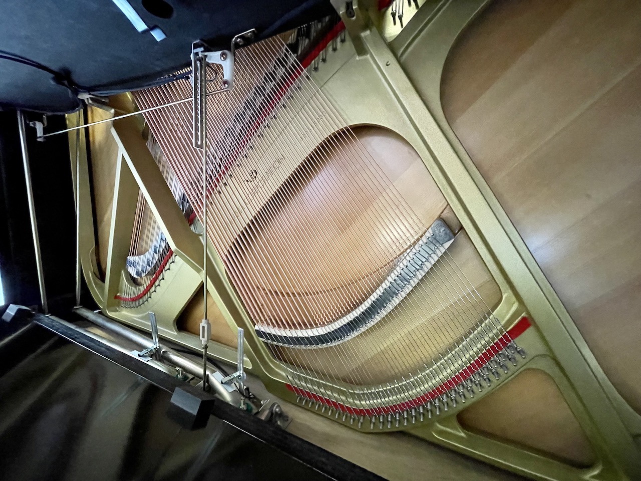 Other than the piano bridge that was initially identified, cracks were also found on the piano bridge at the bottom of the sound board. Upon replacement with new bridges available from Yamaha bridges, the technician dried the soundboard and applied several layers of protective vanish.