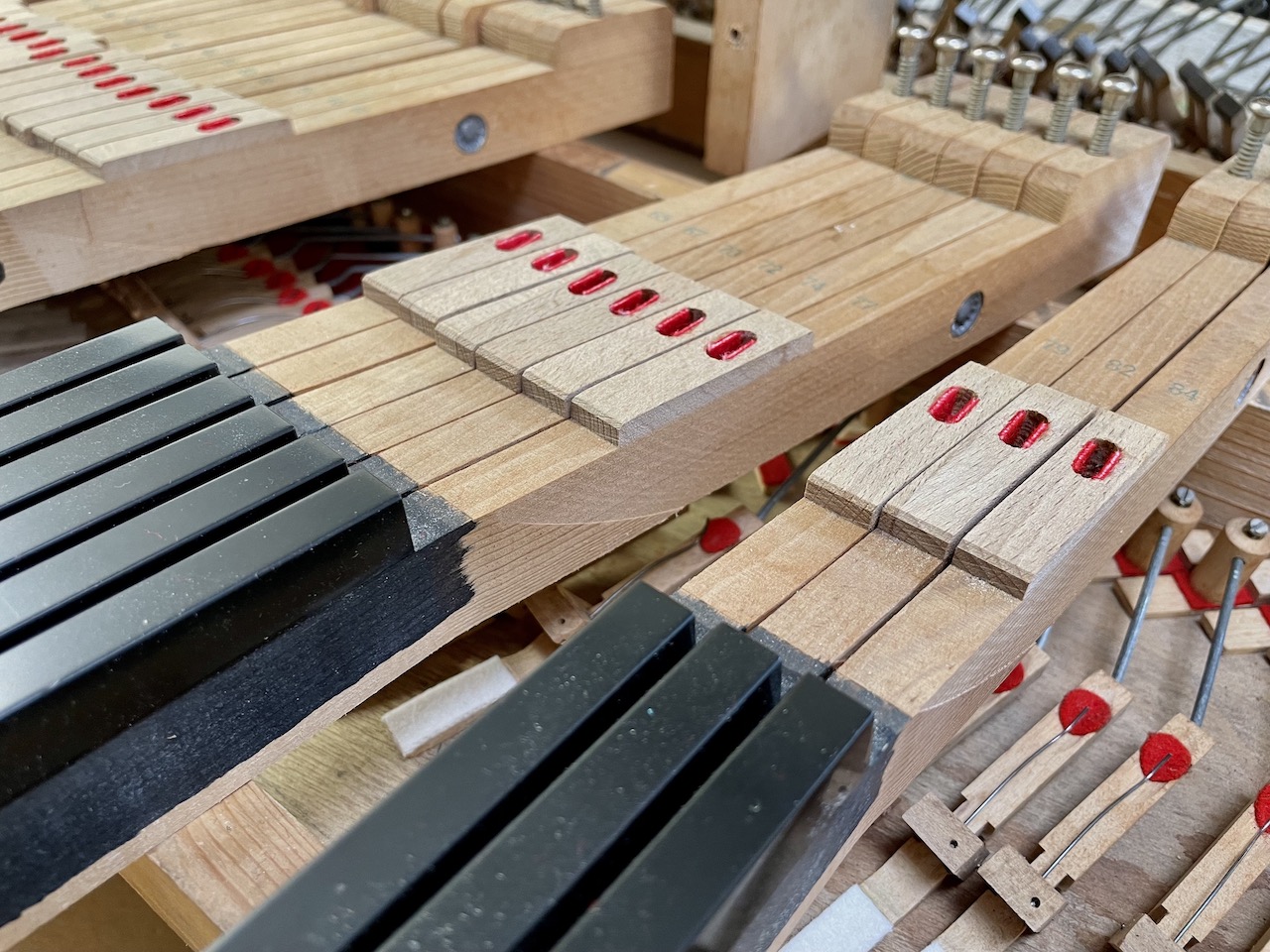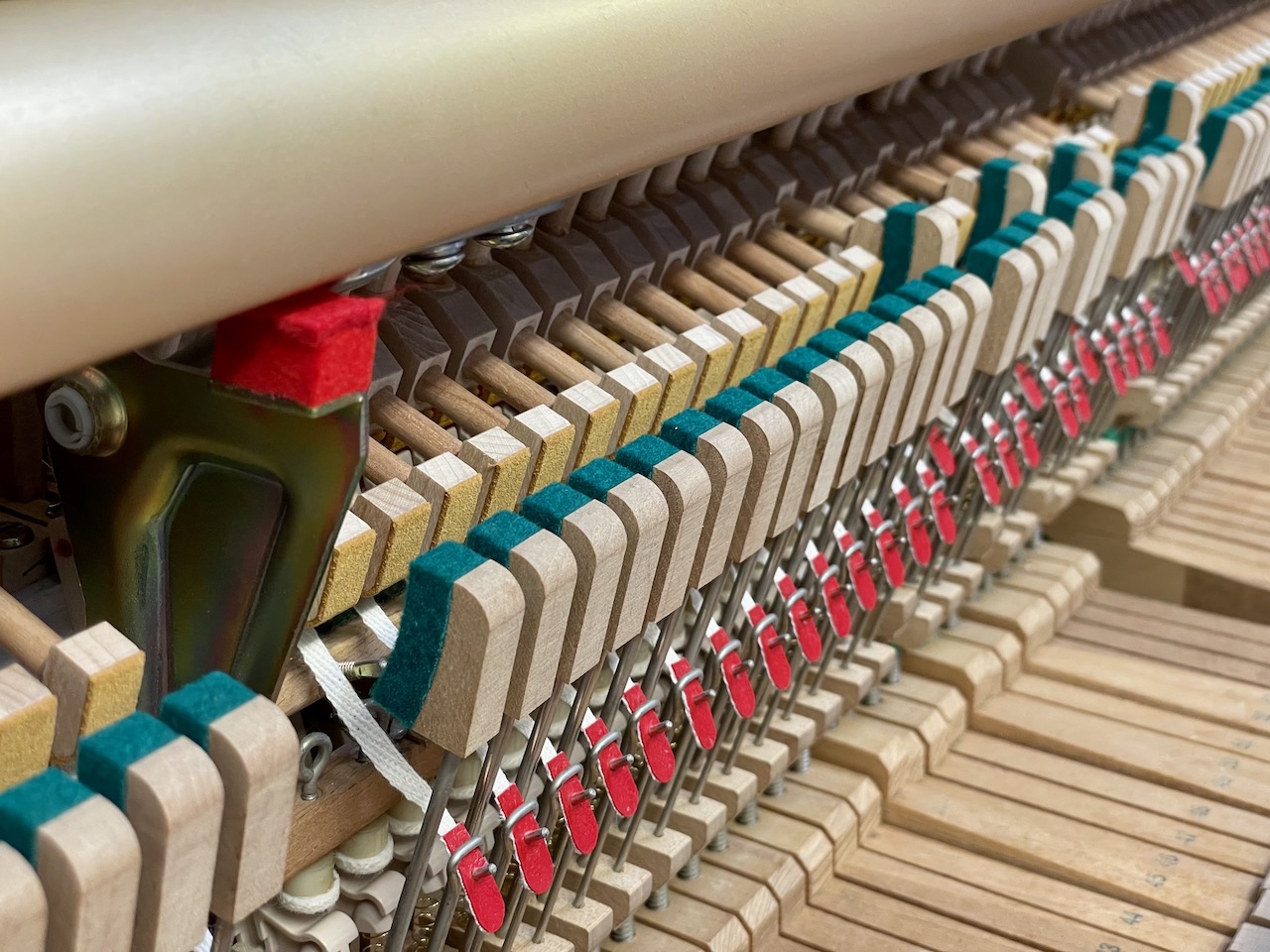 由於是全面翻新,鋼琴內很多零件如 tuning pins,keyboard pins 等要修復或更換,再者 hammer heads、damper heads、琴鍵的絨氈與及絃線等亦需重新更換,工序多之餘亦非常複雜,正好解釋為何翻新需時這麽久。