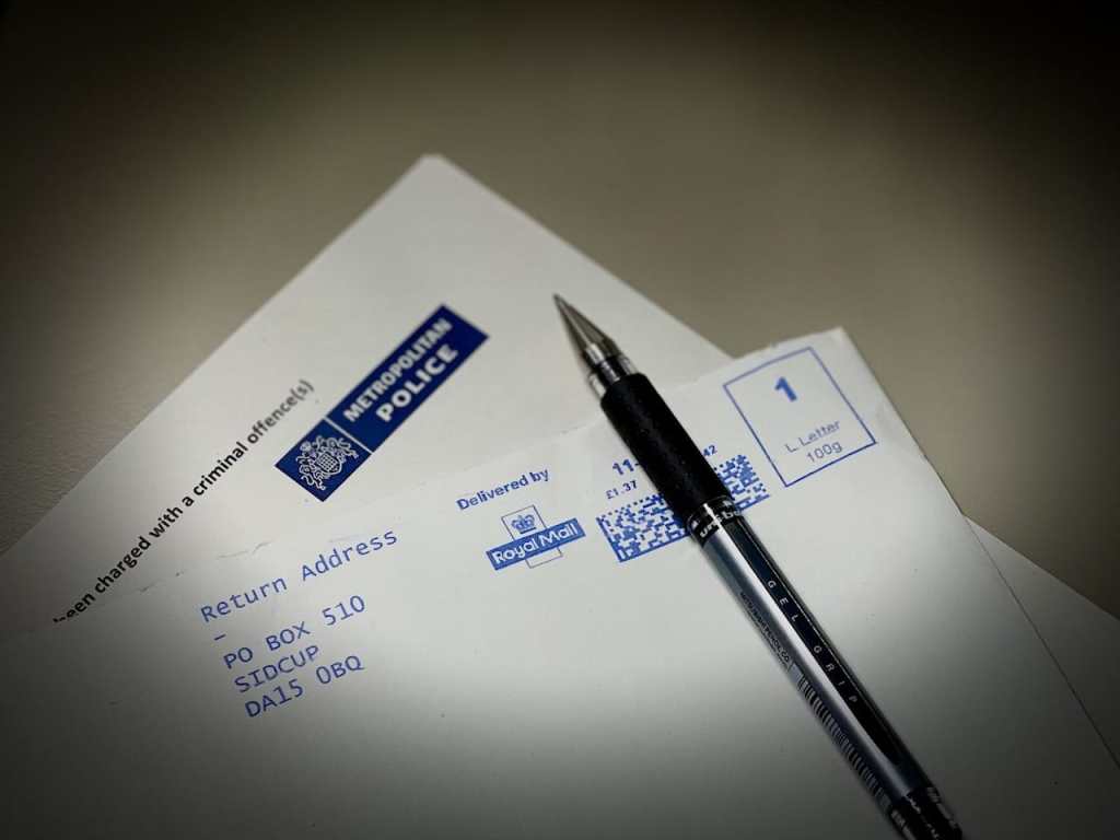 A notice from the Metropolitan Police was received week ago. I was formally charged with an offence.