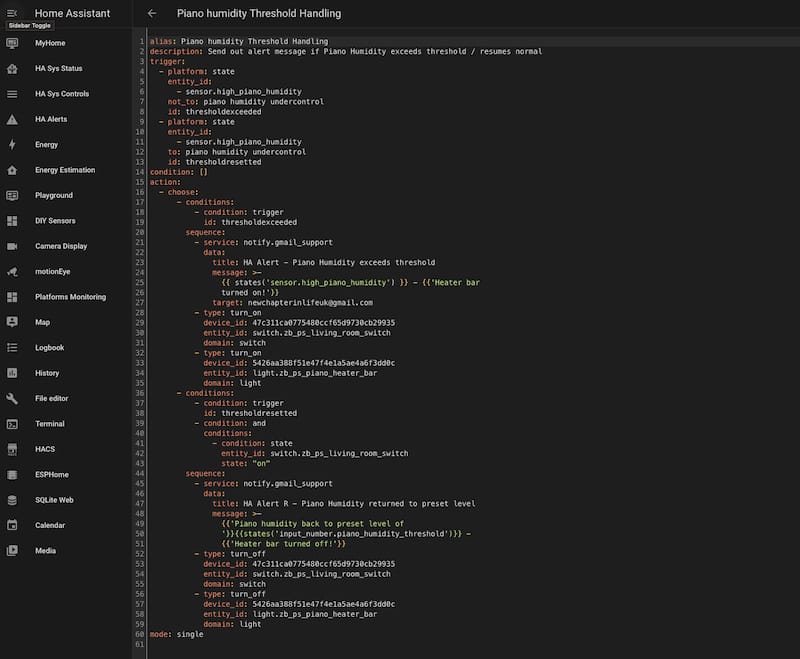 Home Assistant 系統所使用的技術,對於我這類老派 IT 人來説相較陌生,要努力學習才能勉強撑握一二。 第一個要面對是 YAML (Yet Another Markup Language),無論是系統 configuration 或 sensor definition 都以此為基礎,雖然隨着 Home Assistant 的發展,這些 setup 續漸已可透過更友善的 Graphical Interfaces 來完成,但較複雜的 customisation 仍需使用 YAML。