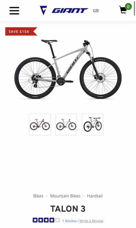From the Giant UK official website, I found a 2022 model Talon 3, which was basically the same as my stolen 2021 model. This relatively new version came with some minor component upgrades and was originally priced at £619. It was now on sale for £465, which is £34 cheaper than my old bike.